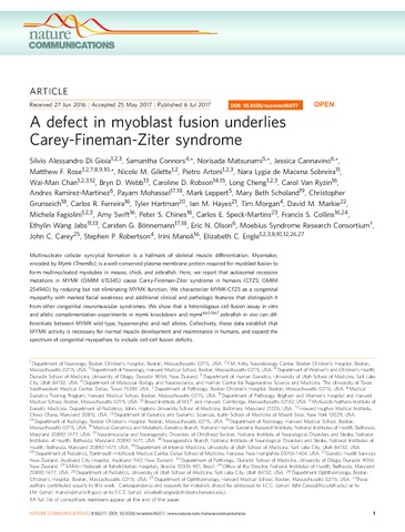 Title: | A defect in myoblast fusion underlies Carey-Fineman-Ziter syndrome |