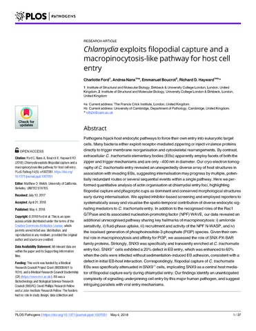 Title: | Chlamydia exploits filopodial capture and a macropinocytosis-like pathway for host cell entry |