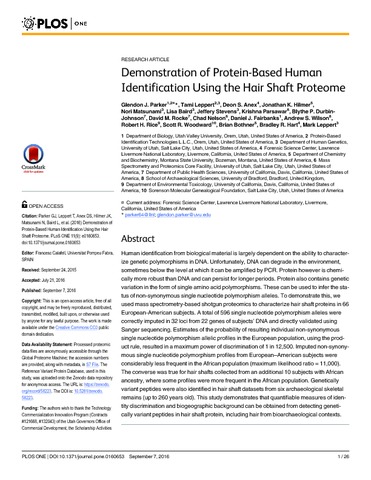 Title: | Demonstration of Protein-Based Human Identification Using the Hair Shaft Proteome |