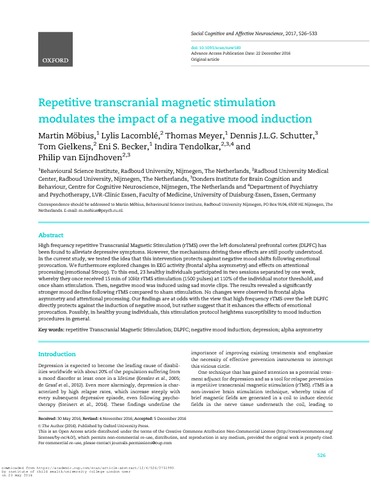 Title: | Repetitive transcranial magnetic stimulation modulates the impact of a negative mood induction |