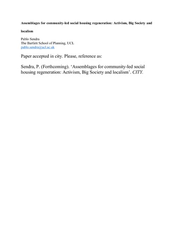 | Title: | Assemblages for community-led social housing regeneration: Activism, Big Society and localism |