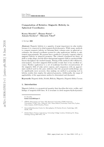 Keywords: | Magnetic fields, Models; Helicity, Magnetic; Magnetic fields, Corona |