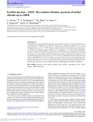 Title: | ExoMOL line lists - XXIX. The rotation-vibration spectrum of methyl chloride up to 1200 K |