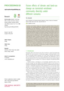 Newbold _Future effects of climate and land-use change on terrestrial vertebrate community diversity under different scenarios_VoR (1).pdf - Published Version Download (877kB) | Preview |