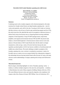 Combining recent work on market categories with a historical perspective, this study examines how broader cultural frames can shape boundary spanning rules—taste for variety and atypicality, and a shift in the rules. Focusing on Jell-O salad, an American dish that is known to mix all sorts of food in aspic and had been popular until the 1970s, this article traces how this salad dish that used to be accepted as a delicious mixture of distinct food (variety) has become seen as a disgusting blend traversing established categories of food (atypicality). Using 247 Jell-O package inserts, recipe books, pamphlets, and magazine advertisements between 1905 and 2005, the present study employs a mixed method approach: a historical process analysis and an event count analysis of the prevalence of Jell-O salad. Results show that the salad is no longer interpreted as a dish serving a variety of favorite food items because the main ingredient, powdered gelatin or Jell-O, has become available to all and dissociated with middle-class cultural frames. The results challenge an implicit assumption of the boundary spanning rules; once a mixture is considered an assortment, it tends to be favorably seen as a creative mix not an atypical hybrid. By evidencing how changes in the relationships between food and cultural frames affect the taste for variety, this study advances current understandings of category spanning and crossing social dichotomies of food.