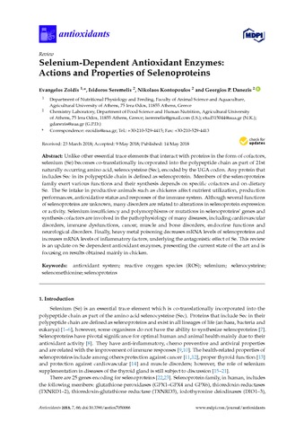 | Title: | Selenium-dependent antioxidant enzymes: Actions and properties of selenoproteins |