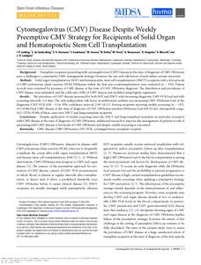 Title: | Cytomegalovirus (CMV) Disease Despite Weekly Preemptive CMV Strategy for Recipients of Solid Organ and Hematopoietic Stem Cell Transplantation |