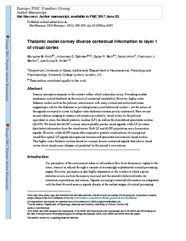 Title: | Thalamic nuclei convey diverse contextual information to layer 1 of visual cortex |