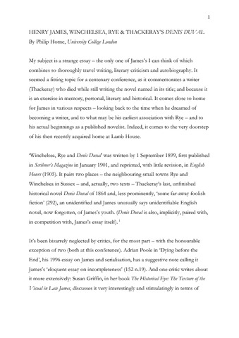 Title: | Henry James, Winchelsea, Rye, and Thackeray’s Denis Duval |