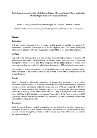 EPR1114: Reducing emergency hospital admissions in England: the importance of the co-ordination of care at specialised neuromuscular services.