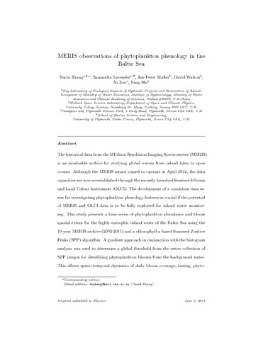 Title: | MERIS observations of phytoplankton phenology in the Baltic Sea |