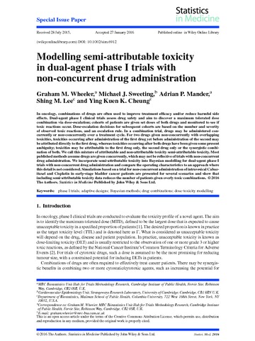 Modelling semi-attributable toxicity in dual-agent phase I trials with non-concurrent drug administration - Wheeler et al 2016.pdf - Published Version Download (1MB) | Preview |