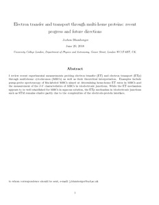 Title: | Electron transfer and transport through multi-heme proteins: recent progress and future directions |