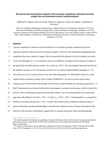 Structural and mechanistic analysis of the arsenate respiratory reductase provides insight into environmental arsenic transformations.