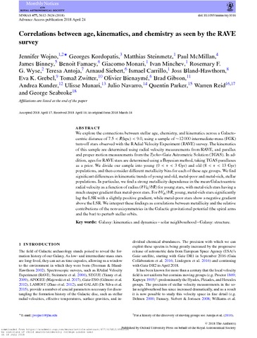 Title: | Correlations between age, kinematics, and chemistry as seen by the RAVE survey |