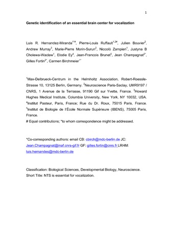 Title: | Genetic identification of a hindbrain nucleus essential for innate vocalization |