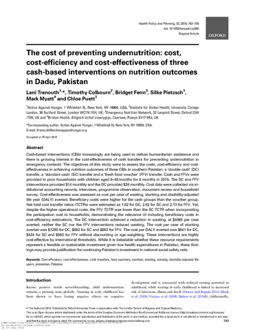 Title: | The cost of preventing undernutrition: cost, cost-efficiency and cost-effectiveness of three cash-based interventions on nutrition outcomes in Dadu, Pakistan |