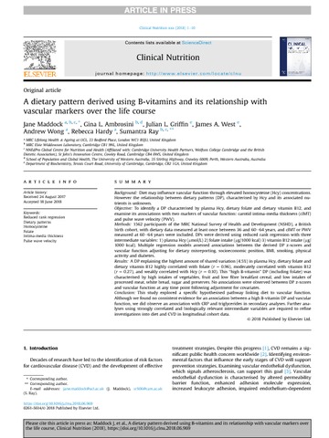 A dietary pattern derived using B-vitamins and its relationship with vascular markers over the life course.