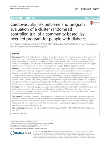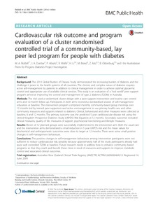 Title: | Cardiovascular risk outcome and program evaluation of a cluster randomised controlled trial of a community-based, lay peer led program for people with diabetes |