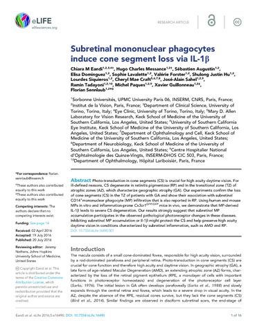 Title: | Subretinal mononuclear phagocytes induce cone segment loss via IL-1β |