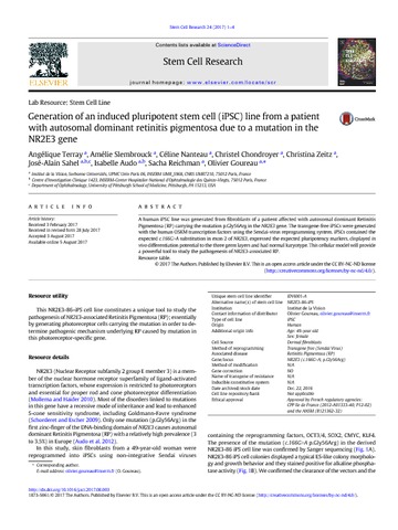 Title: | Generation of an induced pluripotent stem cell (iPSC) line from a patient with autosomal dominant retinitis pigmentosa due to a mutation in the NR2E3 gene. |