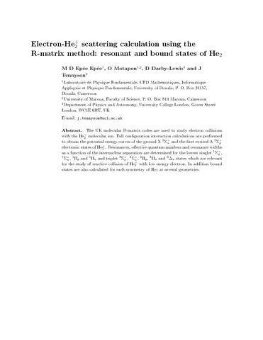 Title: | Electron–He+2 scattering calculation using the R-matrix method: resonant and bound states of He2 |
