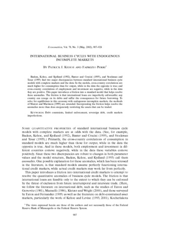 Title: | International business cycles with endogenous incomplete markets |