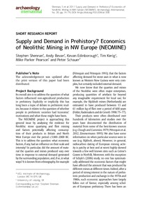 Title: | Supply and Demand in Prehistory? Economics of Neolithic Mining in NW Europe (NEOMINE) |