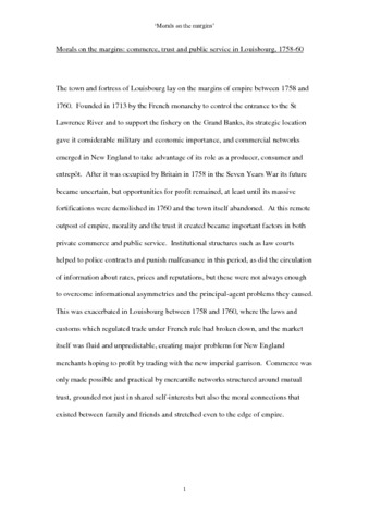 Title: | Morals on the Margins: Commerce, Trust, and Public Service in Louisbourg, 1758-1760 |
