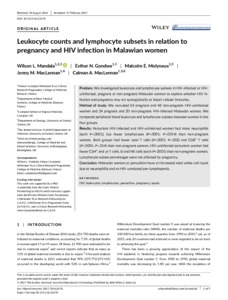 Title: | Leukocyte counts and lymphocyte subsets in relation to pregnancy and HIV infection in Malawian women |
