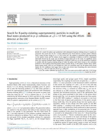 Title: | Search for R-parity-violating supersymmetric particles in multi-jet final states produced in p–p collisions at s=13 TeV using the ATLAS detector at the LHC |