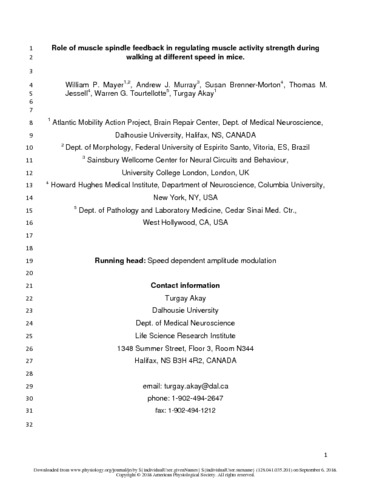 Title: | Role of muscle spindle feedback in regulating muscle activity strength during walking at different speed in mice |