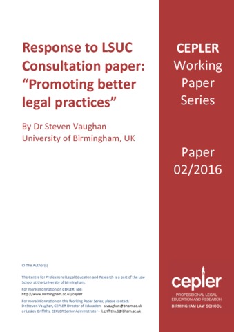 Title: | Response to LSUC Consultation paper: "Promoting better legal practices" |