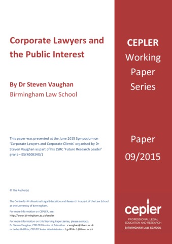 Centre for Professional Legal Education and Research, University of Birmingham: Birmingham, UK.