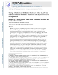 Title: | Change in patterns of HIV status disclosure in the HAART era and association of HIV status disclosure with depression level among women |