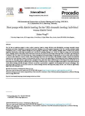 Title: | Heat pumps with district heating for the UK's domestic heating: individual versus district level |