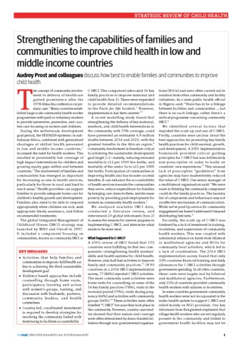 | Title: | Strengthening the capabilities of families and communities to improve child health in low and middle income countries |