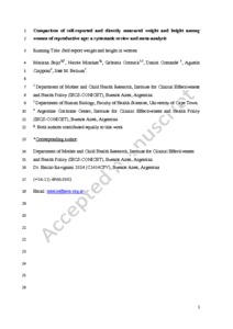 Title: | Comparison of self-reported and directly measured weight and height among women of reproductive age: a systematic review and meta-analysis |