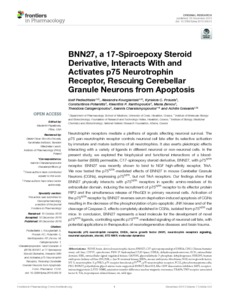 Title: | BNN27, a 17-Spiroepoxy Steroid Derivative, Interacts With and Activates p75 Neurotrophin Receptor, Rescuing Cerebellar Granule Neurons from Apoptosis |