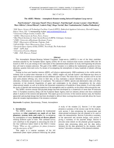 Title: | The ARIEL mission – Atmospheric remote-sensing infrared exoplanet large survey |