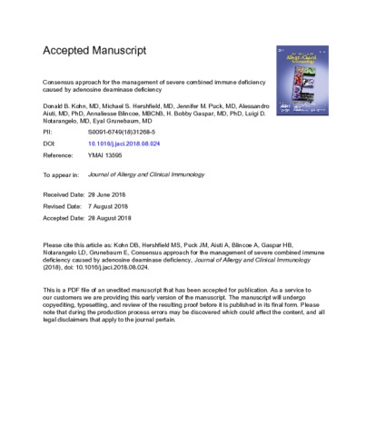 Title: | Consensus approach for the management of severe combined immune deficiency caused by adenosine deaminase deficiency |
