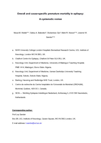 Overall and cause-specific premature mortality in epilepsy: A systematic review.