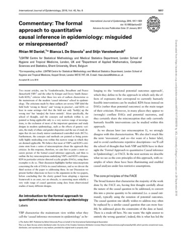 De Stavola_Commentary. The formal approach to quantitative causal inference in epidemiology. Misguided or misrepresented_VoR.pdf - Published Version Download (417kB) | Preview |