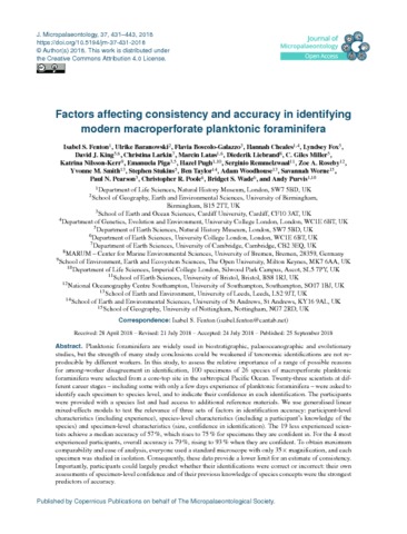 | Title: | Factors affecting consistency and accuracy in identifying modern macroperforate planktonic foraminifera |