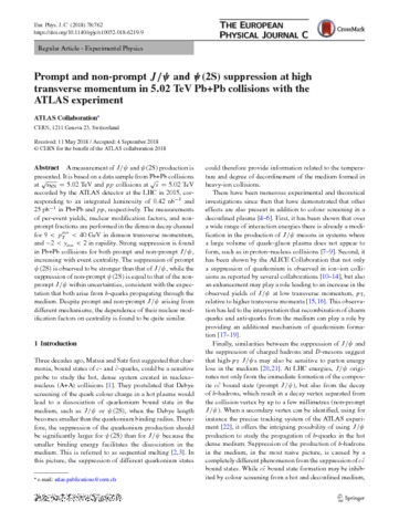 Konstantinidis_Prompt and non-prompt J or ψ and ψ(2 S) suppression at high transverse momentum in 5.02TeV Pb plus Pb collisions with the ATLAS experiment_VoR.pdf - Published Version Download (2MB) | Preview |