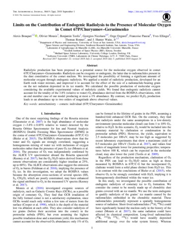 Limits on the Contribution of Endogenic Radiolysis to the Presence of Molecular Oxygen in Comet 67P/Churyumov-Gerasimenko.