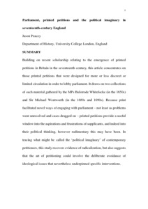 Title: | Parliament, printed petitions and the political imaginary in seventeenth-century England |
