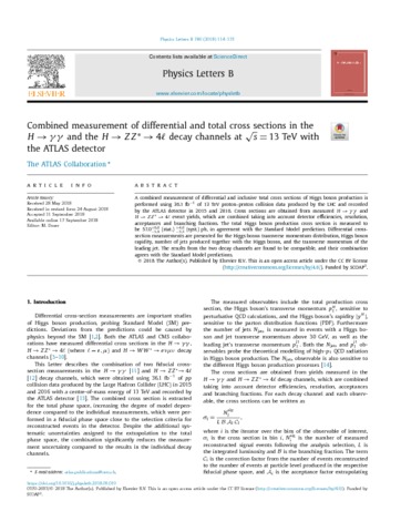 Combined measurement of differential and total cross sections in the H → γγ and the H → Z Z∗ → 4ℓ decay channels at s=13 TeV with the ATLAS detector.