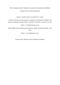 Title: | Changing students’ attitudes to people with intellectual disabilities: findings from a natural experiment |