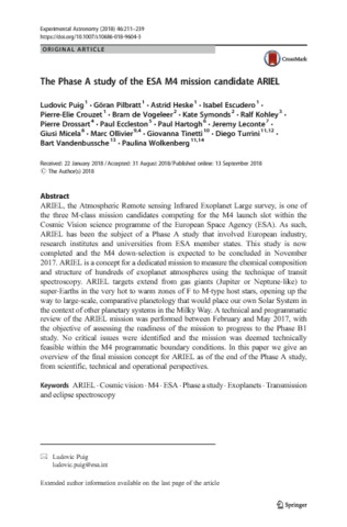 Title: | The phase a study of the ESA M4 mission candidate ARIEL |